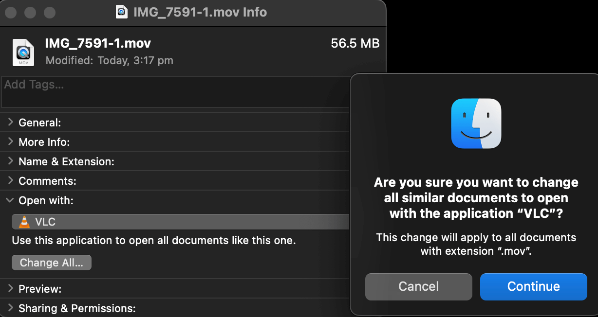 VLC can be used to open video files by default on a mac. We need to change from the default QuickTime Player to VLC for a video file and make sure the change is applied to all other media files. All we do is, right-click on a media file, choose the get info option and from there switch to VLC on the Open with section. Then we apply the change universally by hitting the change all button.